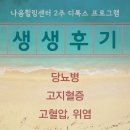 가시게 되는 경험을 하면 많이 놀라곤 하세요. 당뇨, 고혈압, 고지혈증은 디톡스를 통해 상대적으로 손쉽게 해결되는 문제이니 식단만 잘 조절해주셔도 크게...과식을 하지 않았나 생각이 들어요. 2주간 생활에서 음식과 건강 그리고 운동이 얼마나 중요한지를 알게 되었고, 하나님과의 관계를 통해 마음의 치유 또한...